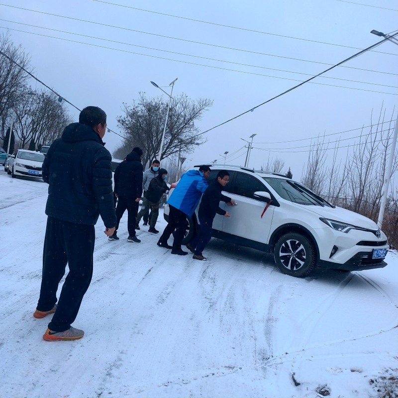 12月13日淄博迎來今年的第一場大雪。寒風裹著漫天雪花飛舞,地上很快就被白雪覆蓋了,因突如其來的大雪造成各地路面積雪嚴重,特別是山區(qū)道路因積雪路滑格外難行,造成了多起交通事故。省道317崮山段已經(jīng)因此形成嚴重的堵車現(xiàn)象。面對擁堵、高危的道路狀況,恰行至此的第三工程公司黨支部成員紛紛下車,將無法移動的車輛推至安全位置,給來往車輛疏通道路,幫忙救助遇困人員車輛,避免其他車輛因制動困難撞到這些車輛,造成更大的交通事故。