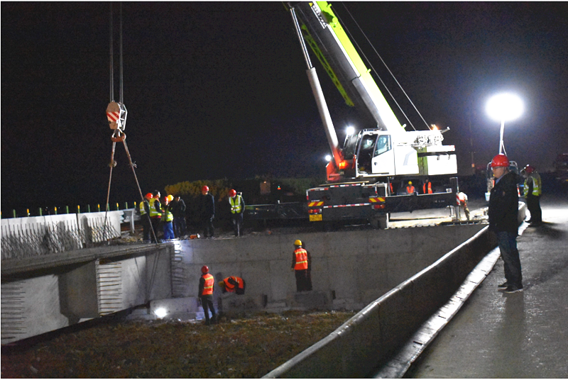 2020年4月13日經(jīng)過晝夜奮戰(zhàn),膠新鐵路橋順利架通。