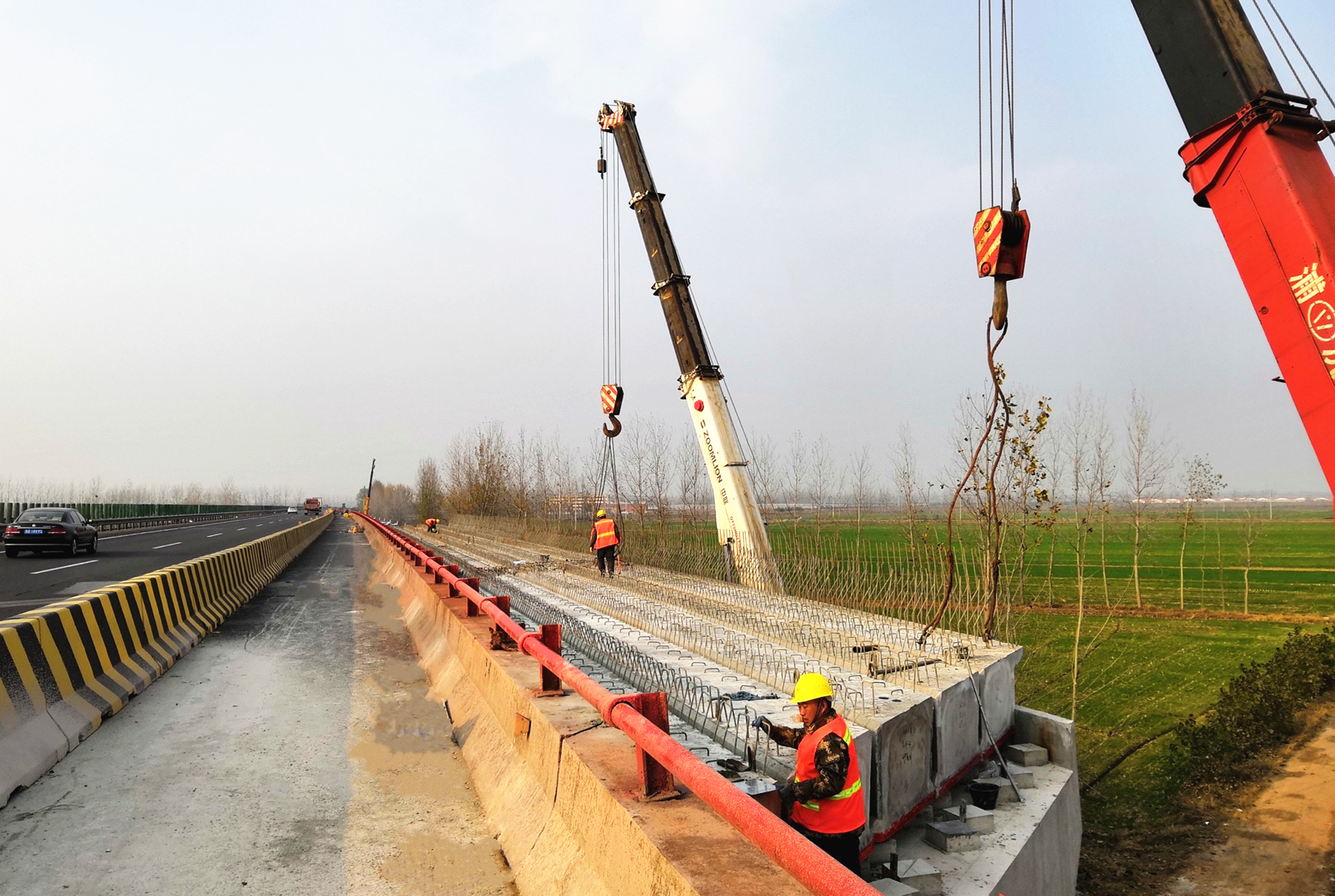 2020年1月18日,全線北京方向車輛導(dǎo)改至右幅車道通行,完成了主線17.1公里的交通導(dǎo)改工作,至此,京滬十標(biāo)段第四階段交通導(dǎo)改工作率先完成,左幅老橋拆除重建工作正式啟動。