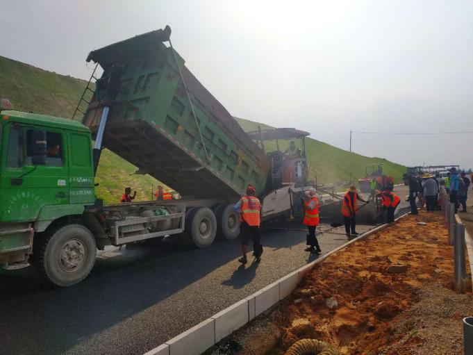 2020.04.15  K19+925-K20+324段左幅瀝青碎石上基層攤鋪,標(biāo)志著標(biāo)段正式進(jìn)入路面油層施工階段。