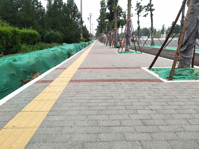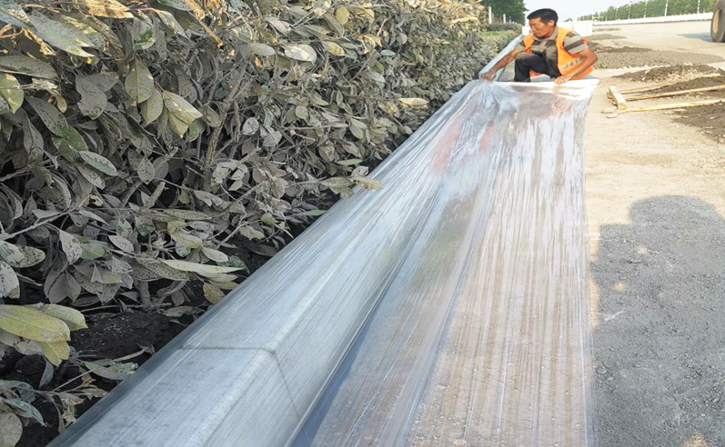 24日,路緣石安裝完成,為防止在攤鋪瀝青面層造成污染,為路緣石覆蓋薄膜↓
