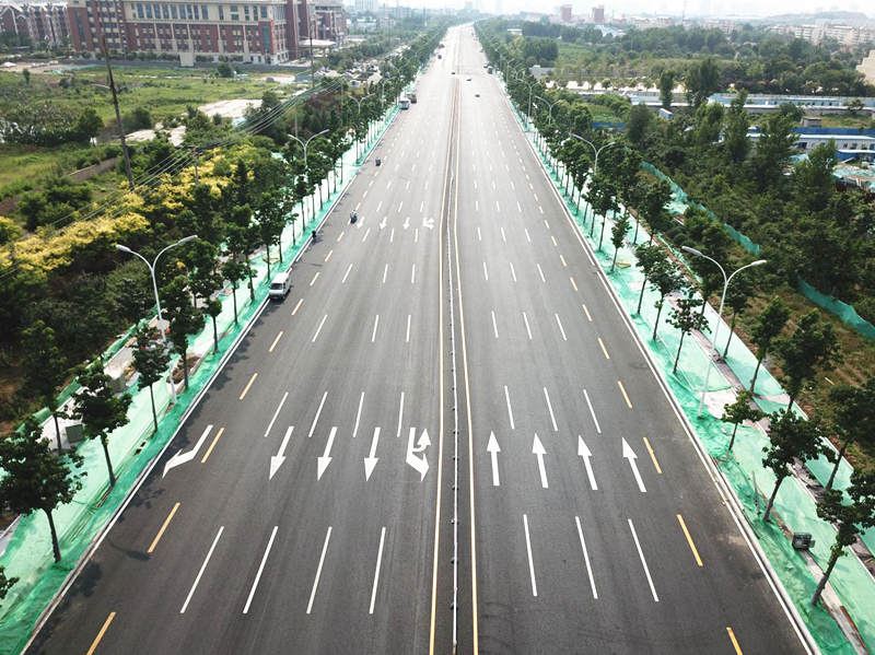 10日,中潤大道項目全線首家全幅瀝青鋪設完成↓