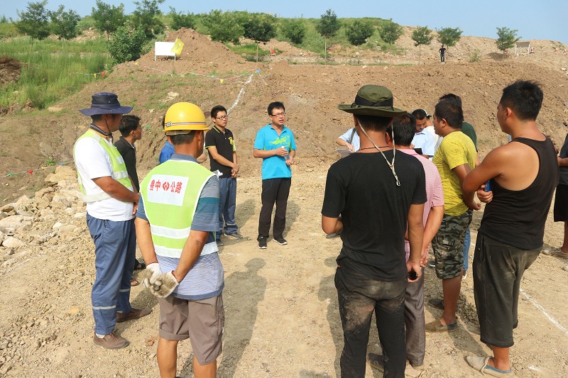 2016年8月12日星期五上午8點,S102濟青線淄川段二工區(qū)強夯現(xiàn)場,召開現(xiàn)場技術(shù)安全交底會,隨后展開強夯施工。