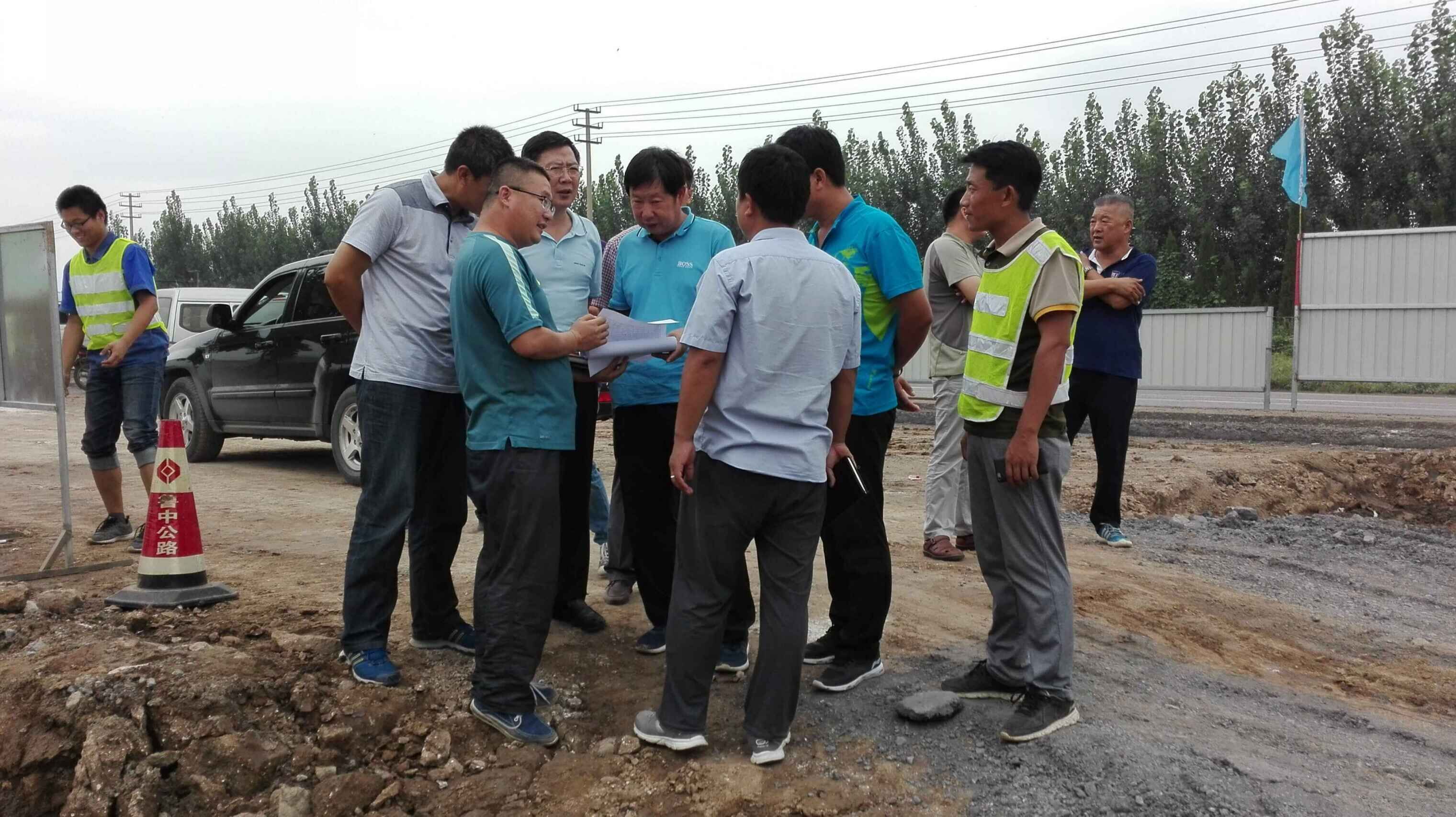 2016年8月16日,質(zhì)監(jiān)站張站長(zhǎng)、改建辦謝國(guó)木、總監(jiān)辦翟立寧、監(jiān)理處吳戰(zhàn)、王斌等領(lǐng)導(dǎo)在項(xiàng)目經(jīng)理翟峰、項(xiàng)目總工田建偉、副經(jīng)理殷軍、宋希偉等人陪同檢查省道102淄川段安全施工工作。
