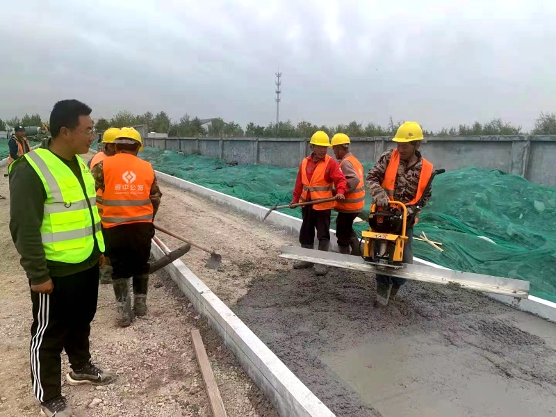 現(xiàn)場管理人員指導(dǎo)人行道混凝土澆筑