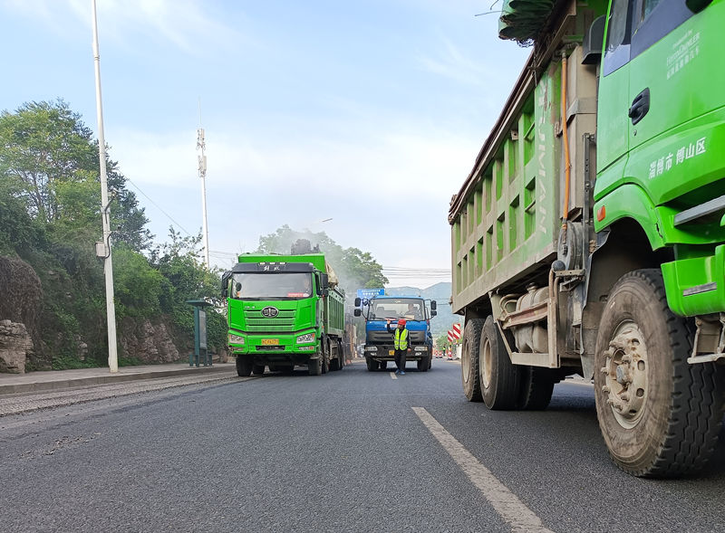 由于G205山深線全線交通壓力大的段落主要集中在博山穿城區(qū)部分,我部接到施工任務(wù)后,迅速與博山公路中心、博山交警大隊(duì)對(duì)G205博山境內(nèi)每一處路口封閉情況進(jìn)行了實(shí)地勘察,優(yōu)化交通組織,在泉王路口、博山北立交口、焦莊路口分別設(shè)置導(dǎo)流點(diǎn),進(jìn)行提前分流車輛,經(jīng)過(guò)為期兩天的大型車輛分流提示,穿城區(qū)大型車輛明顯減少。