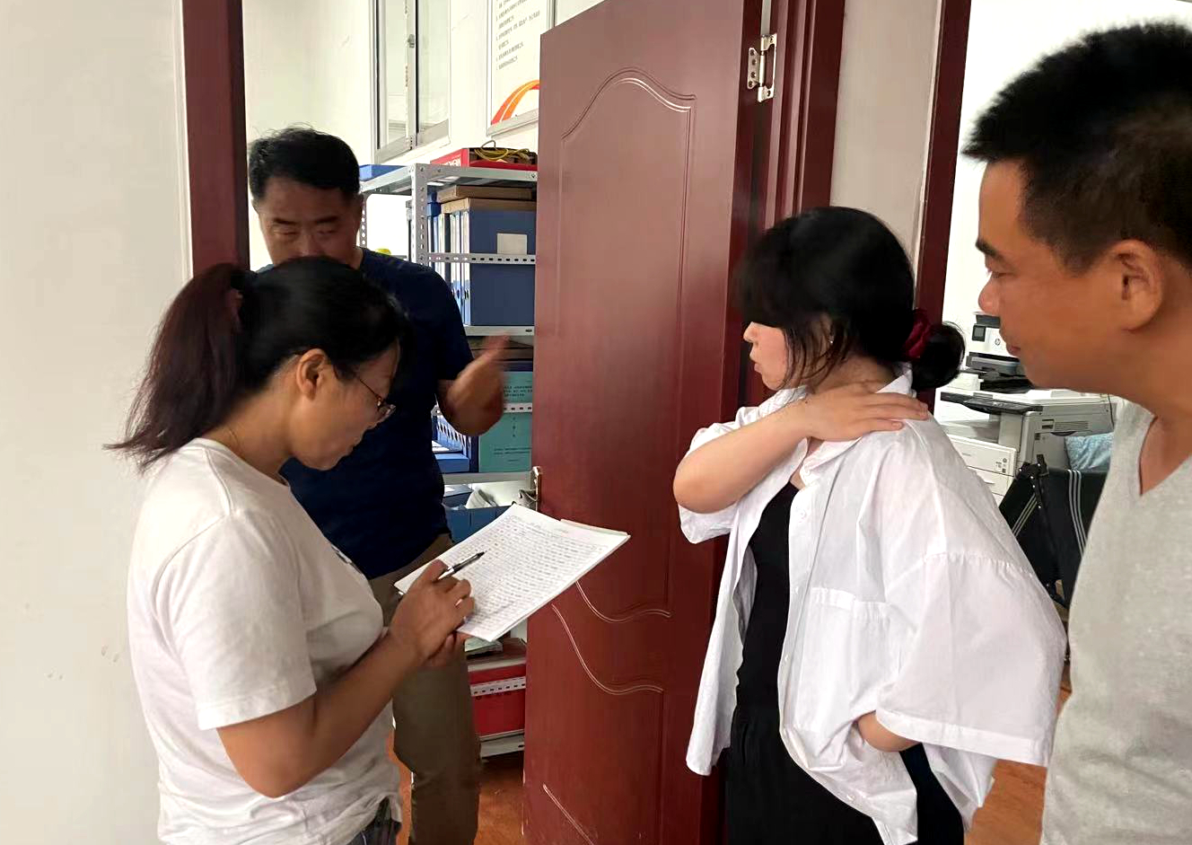 6月30日上午高溫酷熱難耐,盤(pán)點(diǎn)人員揮汗如雨,自東向西采取地毯式清點(diǎn)公司院內(nèi)周轉(zhuǎn)物資,然后逐室清點(diǎn)辦公室內(nèi)所有物品。下午頂狂風(fēng)冒急雨深入現(xiàn)場(chǎng)對(duì)項(xiàng)目露天堆放庫(kù)存物資,項(xiàng)目辦公設(shè)備,生產(chǎn)生活物資等逐一進(jìn)行清點(diǎn)核對(duì)。大到拌合站,小到錄音筆無(wú)不是有就必見(jiàn)實(shí)物,所有盤(pán)點(diǎn)物品一一清清楚楚記錄在案。
