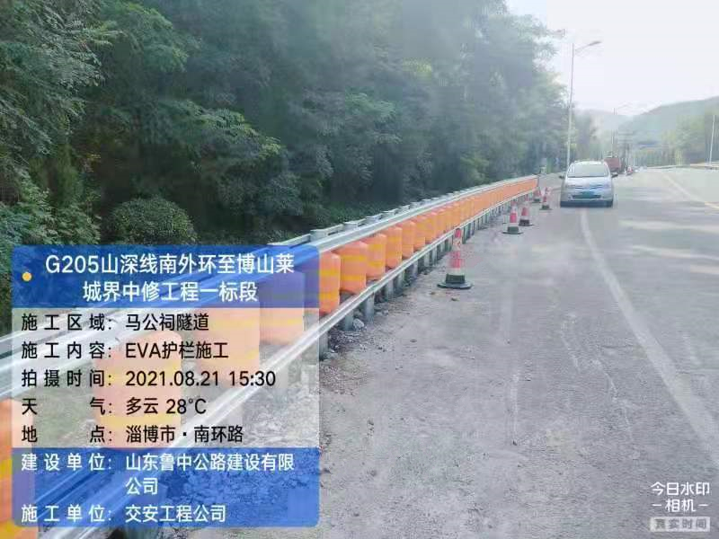 其中,8月18號開始施工的馬公祠隧道口南側(cè)急下坡路段的EVA旋轉(zhuǎn)式防撞護欄為淄博市首例施工,也將成為G205護欄施工中的一處亮點。
