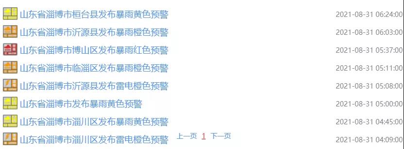 淄博連發(fā)6個(gè)暴雨預(yù)警