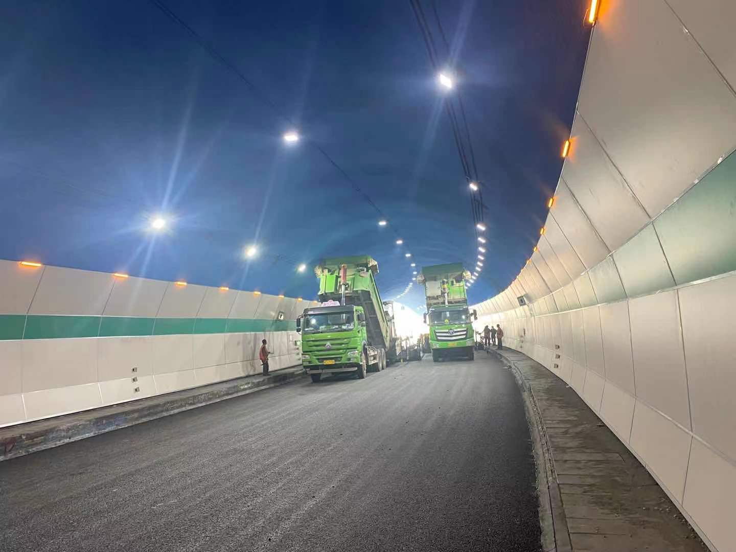 初次來到這里時(shí),馬公祠隧道的整體工程已經(jīng)進(jìn)入了尾聲,現(xiàn)場施工人員正在進(jìn)行緊張的收尾工作—攤鋪瀝青層。我在隧道中慢慢往前行走時(shí)發(fā)現(xiàn)隧道中的溫度越來越高,當(dāng)我來到攤鋪機(jī)的面前時(shí)已經(jīng)不知不覺間汗流浹背。通過施工人員口中了解到,隧道里的溫度最高時(shí)能達(dá)到五六十?dāng)z氏度,我不禁想到這可能是因?yàn)樗淼琅c路面不同,熱氣無法散去導(dǎo)致的。身處高溫之中,看到他們泰然自若地忙碌著,對他們的敬佩之情不禁又增加了幾分。