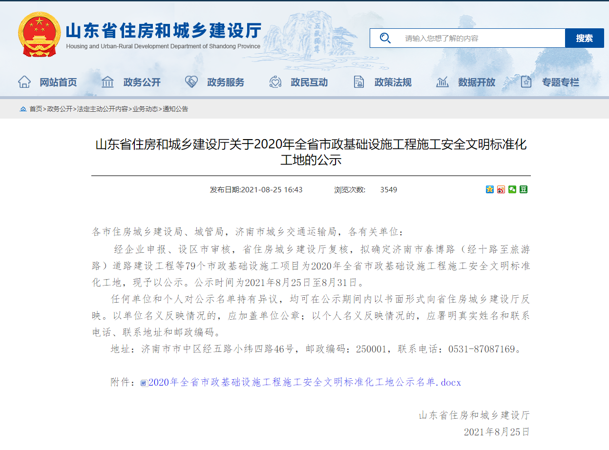 【抓作風(fēng) 創(chuàng)效益】公司聯(lián)通路項(xiàng)目喜獲山東省市政工程 安全文明標(biāo)準(zhǔn)化工地榮譽(yù)稱號(hào)
