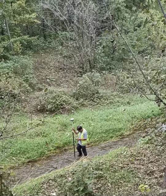 清晨,蒼翠的樹葉上掛滿晶瑩剔透的露珠,陽光透過林間絲絲縫隙筆直的灑落林間,鳥兒站立枝頭梳理著羽毛輕聲的歌唱,到處呈現(xiàn)出祥和安寧,一派欣欣向榮的景象,深秋似乎也在這一刻變得溫柔。此刻,我們辛苦的工作隊伍已經(jīng)到達指定地點,隨時準備著開始一天跋山涉水的丈量世界。