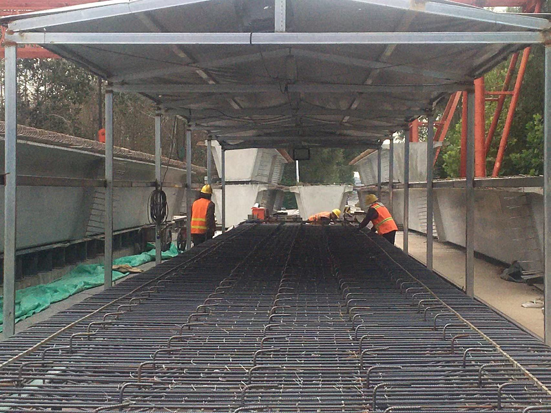 我部技術(shù)人員通過不斷摸索和改進(jìn),研制了頂板拉結(jié)筋定位臺(tái)架,結(jié)合整體頂板臺(tái)架標(biāo)注定位使用,有效解決了預(yù)留拉結(jié)筋定位不準(zhǔn)確的問題。成型外觀線形直順,間距均勻。
