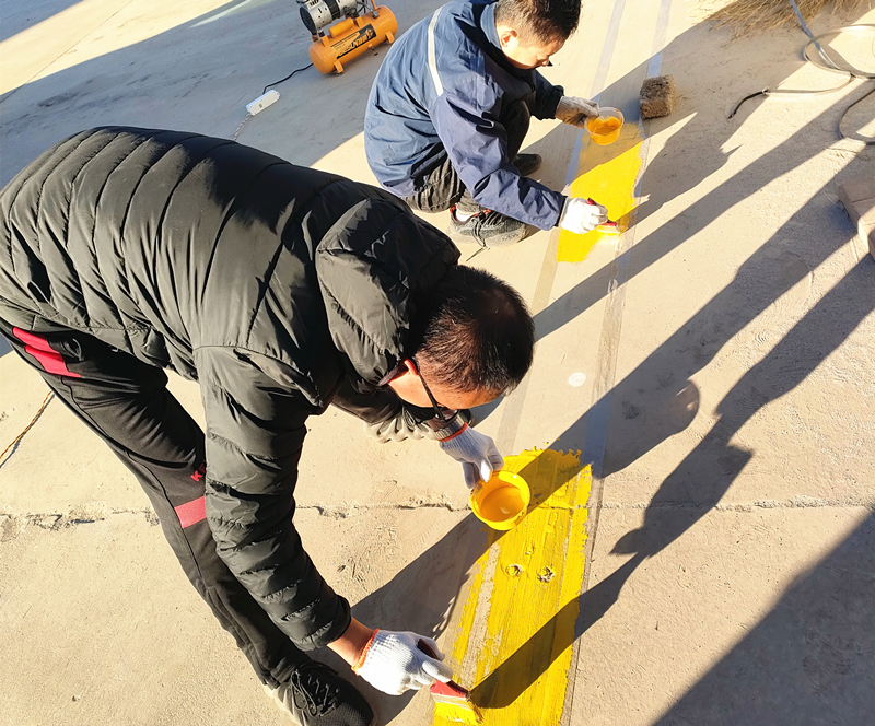 當(dāng)天的施工中,風(fēng)大且天氣較為寒冷,但施工團(tuán)隊(duì)卻配合默契,干凈利落的把標(biāo)線畫(huà)的整整齊齊,并在施工完成后對(duì)場(chǎng)地的垃圾做到及時(shí)清理。