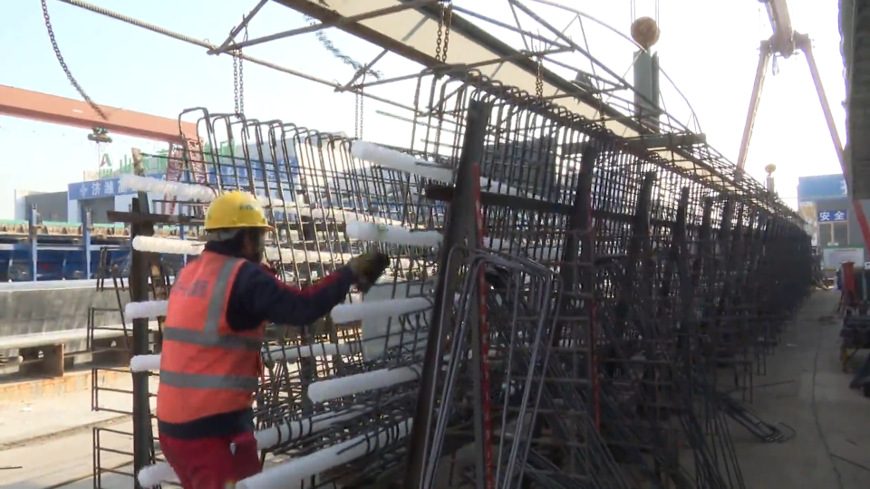 山東魯中公路建設(shè)有限公司第五工程公司預(yù)制場經(jīng)理 高希峰:咱這個鋼筋還得正常隔一綁一啊,不能隔多了,這樣綁扎牢固。