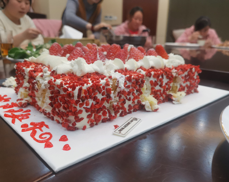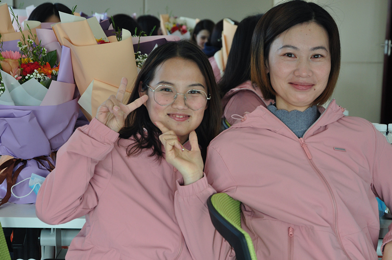 課美衣美人更美,公司還為美麗的女員工們準(zhǔn)備了鮮花、美食與蛋糕。穿著新衣,手捧鮮花,吃著男同事們端上桌香噴噴的熱菜,每個(gè)女員工都笑顏如花。