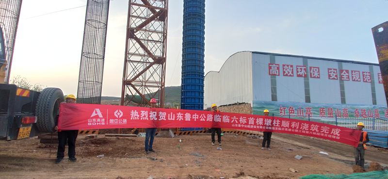 2022年4月21日11時(shí)14分,隨著吊車提升料斗,第一斗混凝土澆入墩柱柱模中,臨淄至臨沂高速公路第六標(biāo)段項(xiàng)目西里互通A匝道橋首根墩柱開始澆筑。經(jīng)過現(xiàn)場施工人員近6根小時(shí)的連續(xù)作業(yè),16時(shí)53分,首墩順利澆筑完成,標(biāo)志著臨臨六標(biāo)項(xiàng)目墩柱施工正式拉開序幕。