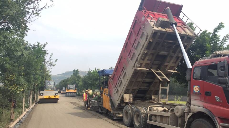 路面分公司博草線瀝青攤鋪施工現(xiàn)場
