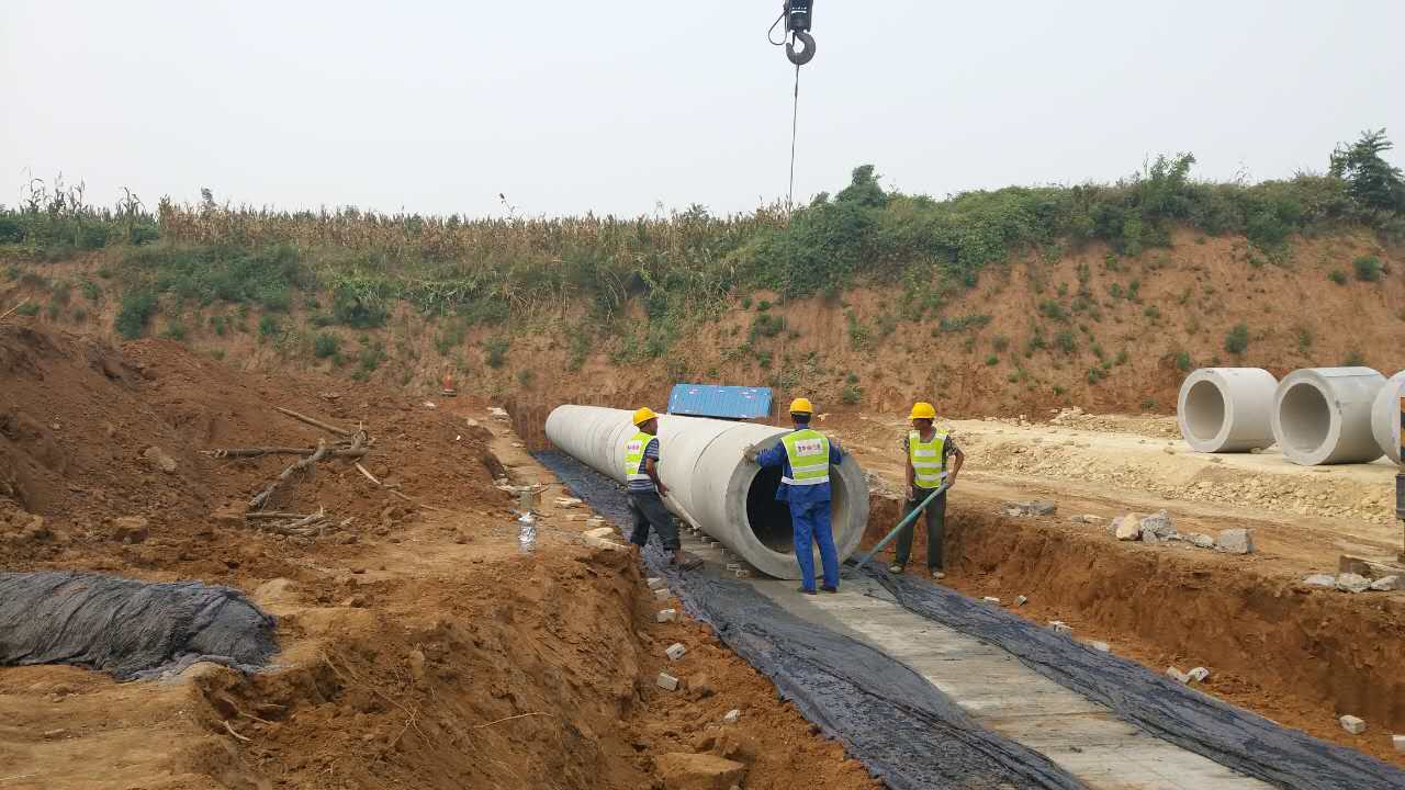 市政分公司S102工地圓管涵安裝施工現(xiàn)場