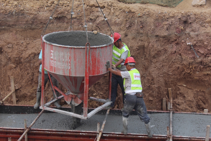 橋隧分公司馬南路孝婦河墩柱首件混凝土澆筑施工現(xiàn)場