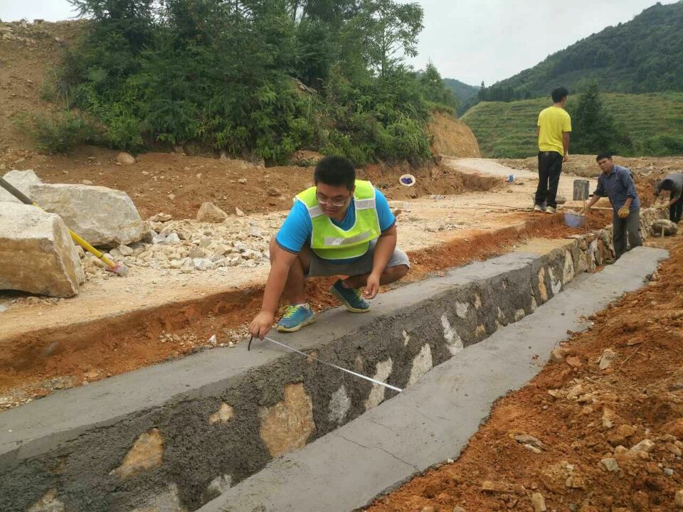 基礎分公司江西項目部質檢員劉光財現(xiàn)場檢查排水溝尺寸