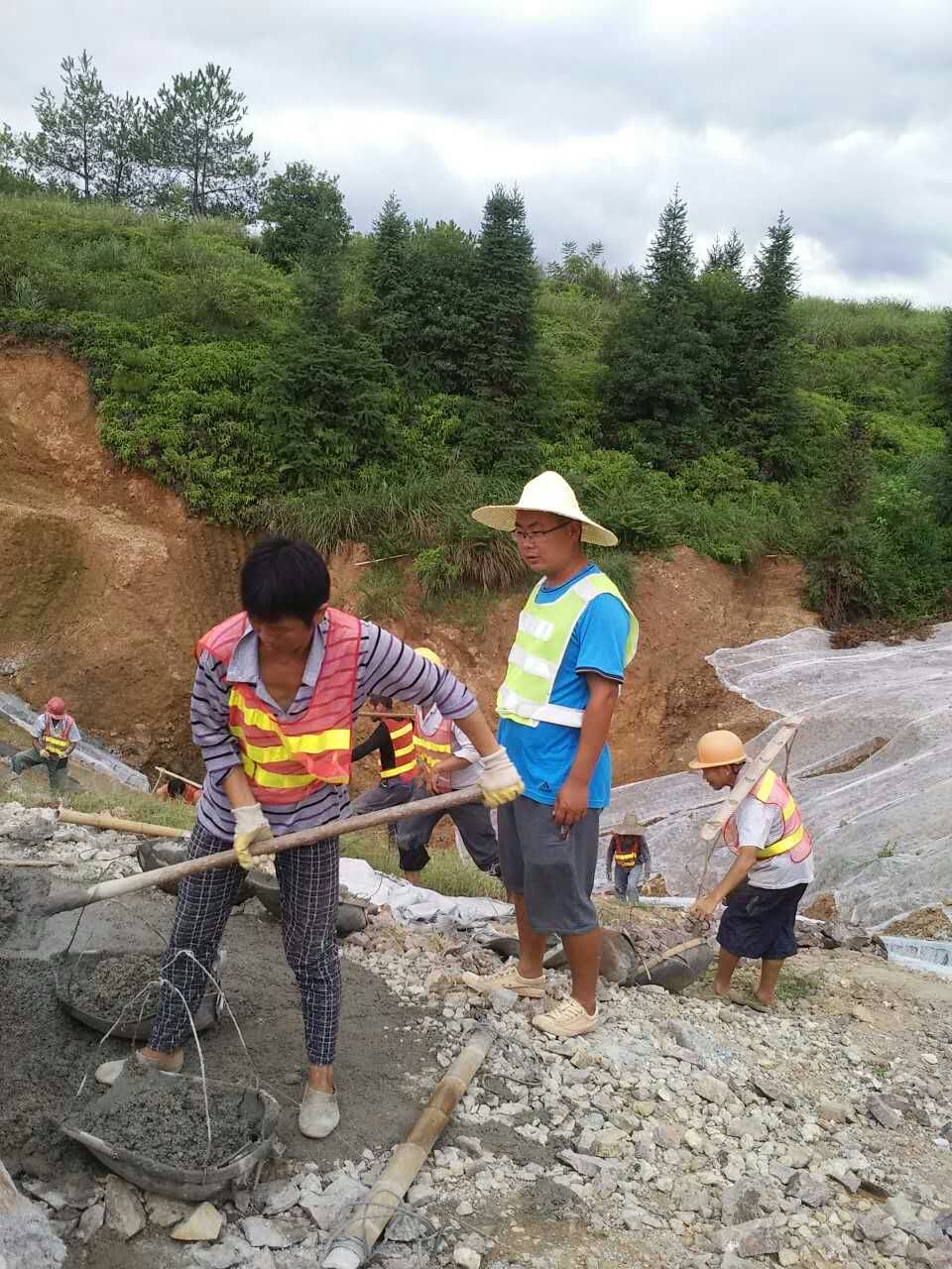 基礎分公司江西項目部質檢負責人金新平檢查橋下護坡施工