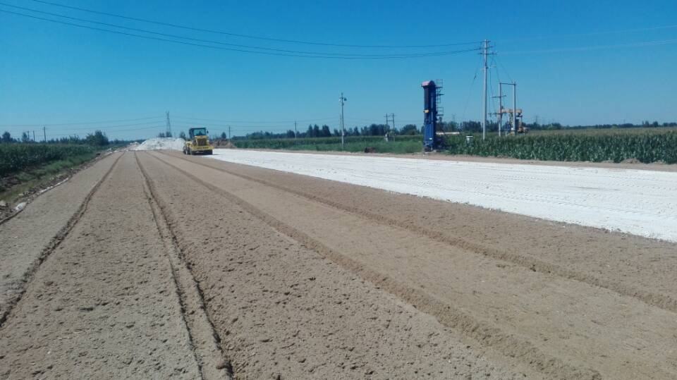 基礎分公司S102路基三分部徐福瑞現(xiàn)場控制基層碾壓