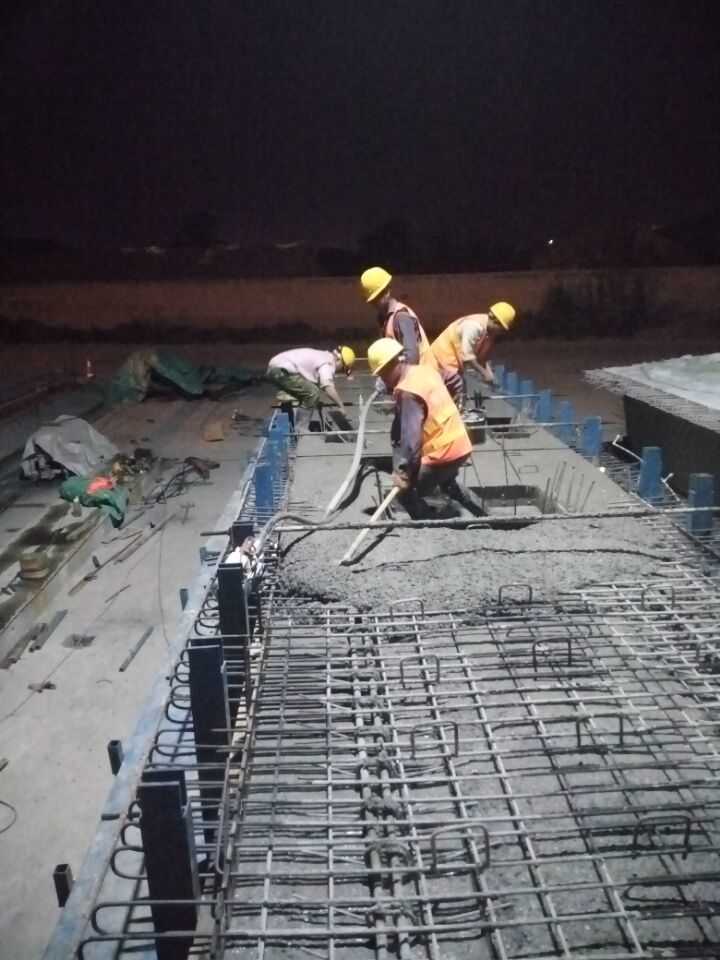 橋隧分公司張店梁場深夜箱梁砼澆筑現(xiàn)場