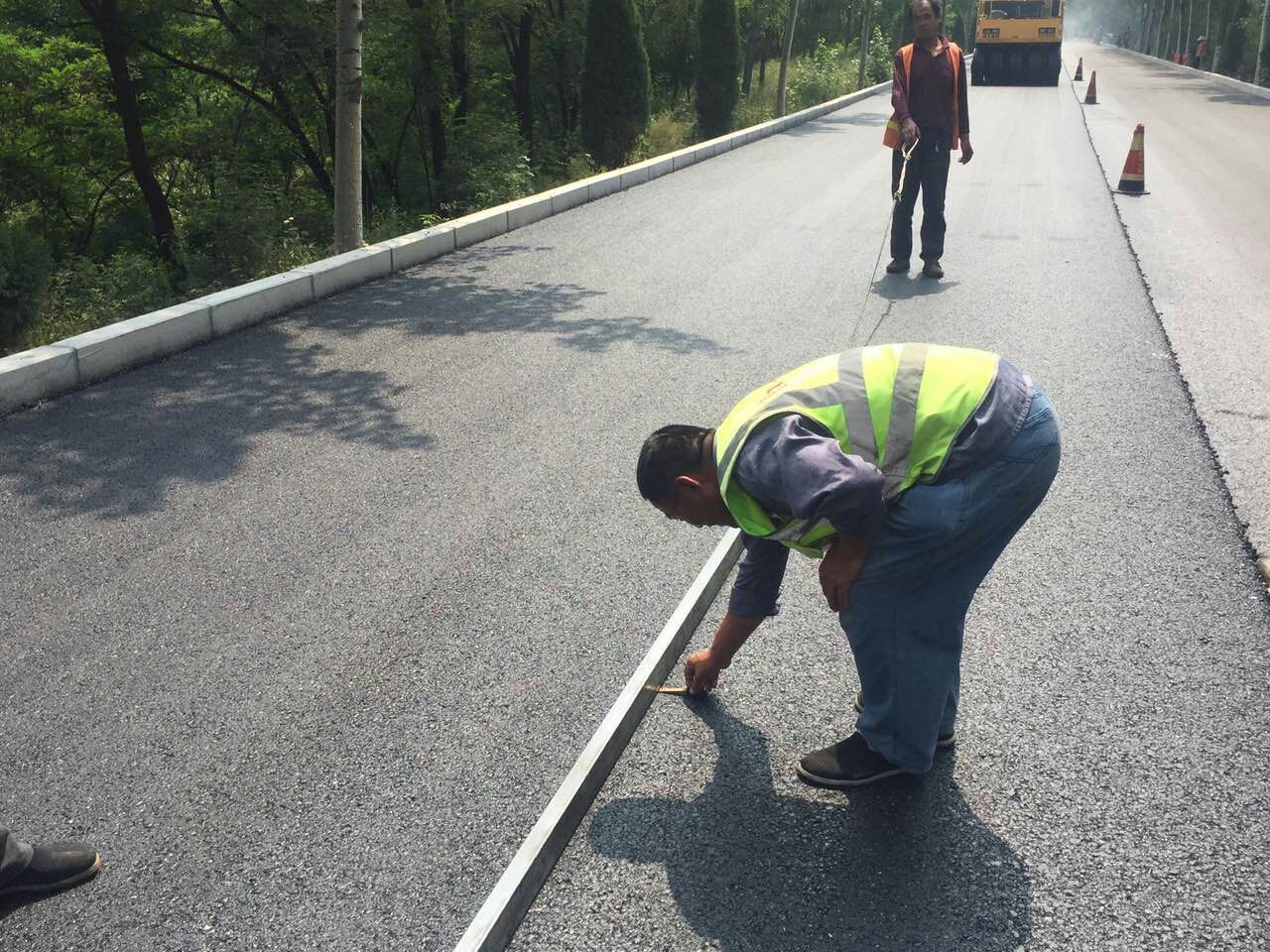 路面分公司博草線施工員在進行平整度檢測