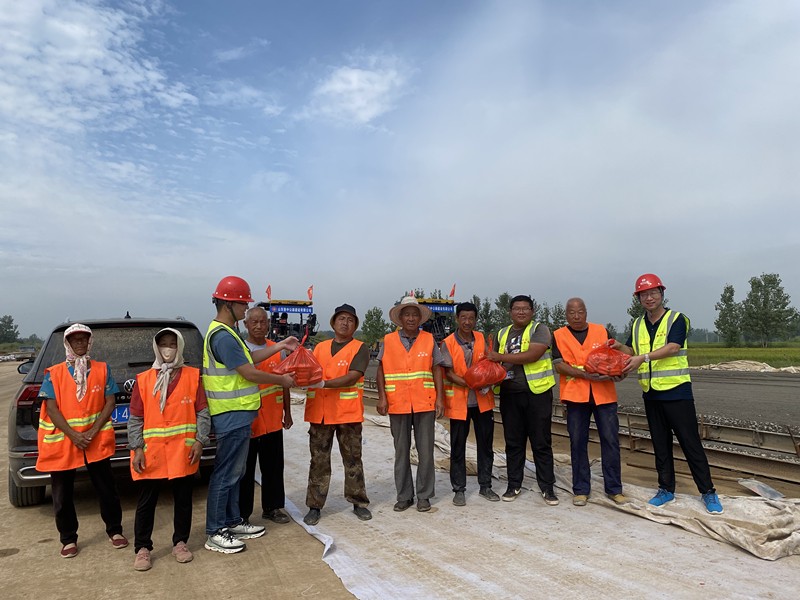 9月9日,G205項目部準備了月餅、豬肉等物品,為駐守在工地一線的施工隊伍送去了節(jié)前慰問和祝福,收到禮物的工人們都十分感動,紛紛說道:“項目部時刻惦記著工地上的我們,真的太暖心了。感謝公司和項目部送來的溫暖,雖然回不了家,但是也感受到了家的溫暖”。