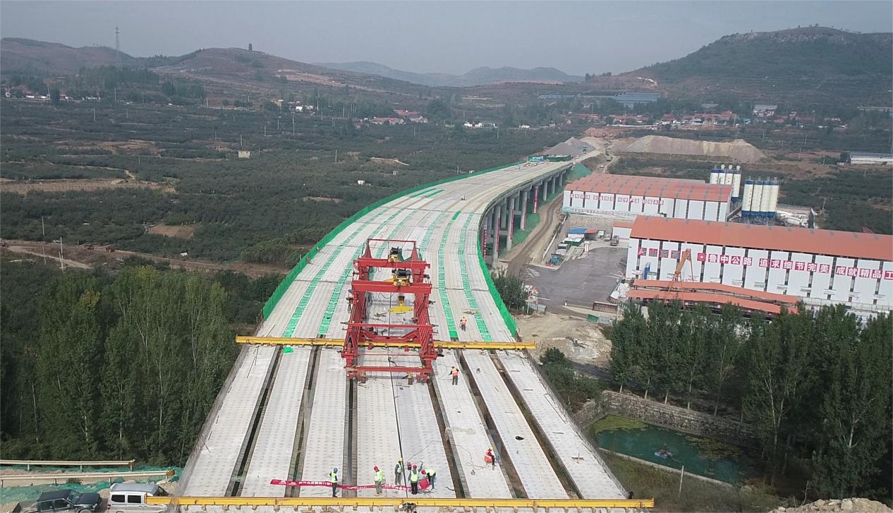 苗莊特大橋處架橋機已安裝、調(diào)試完畢,做好吊裝準備