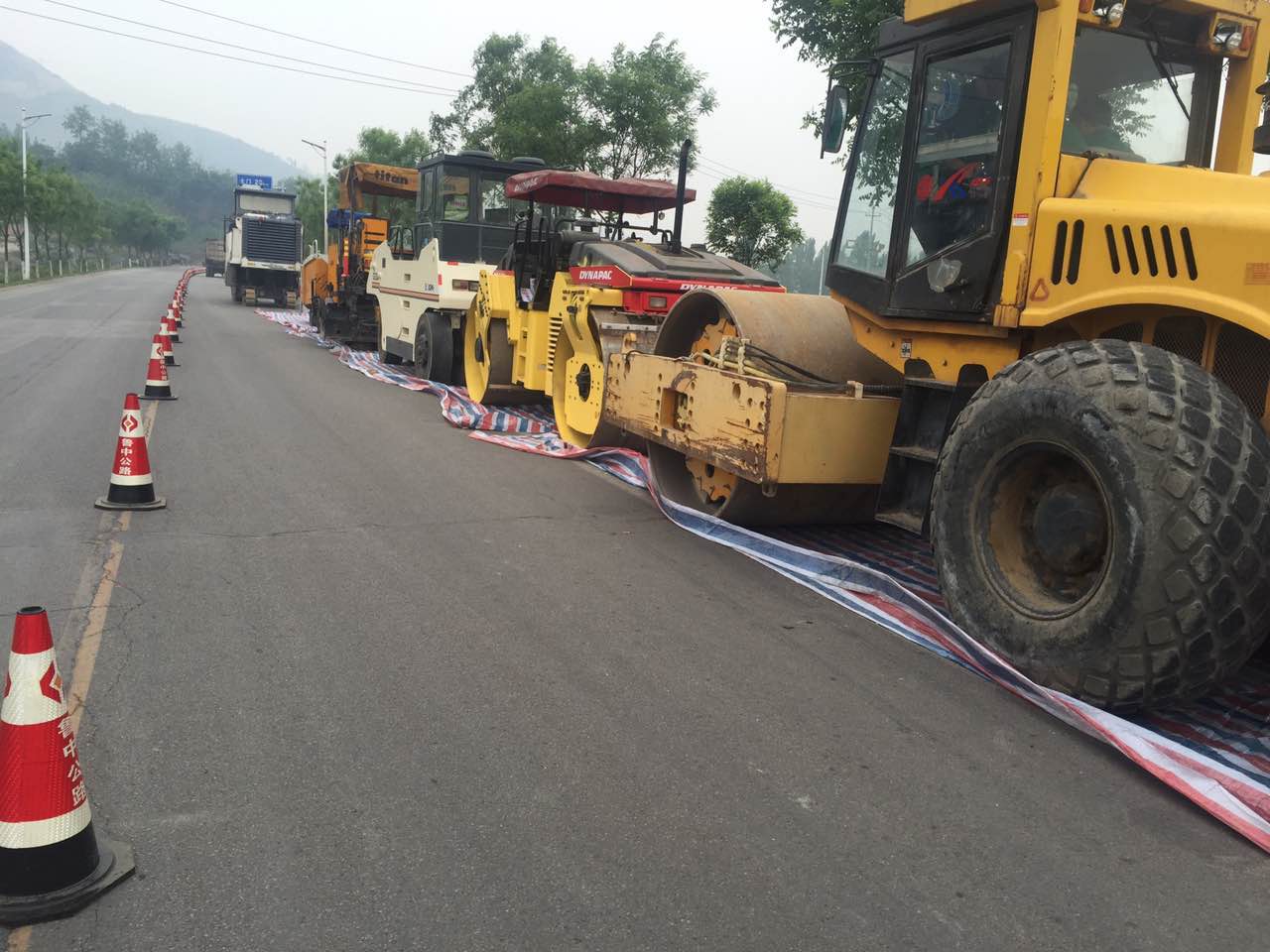 中修段基層覆蓋雙層養(yǎng)生毯并側(cè)噴灑水養(yǎng)生。