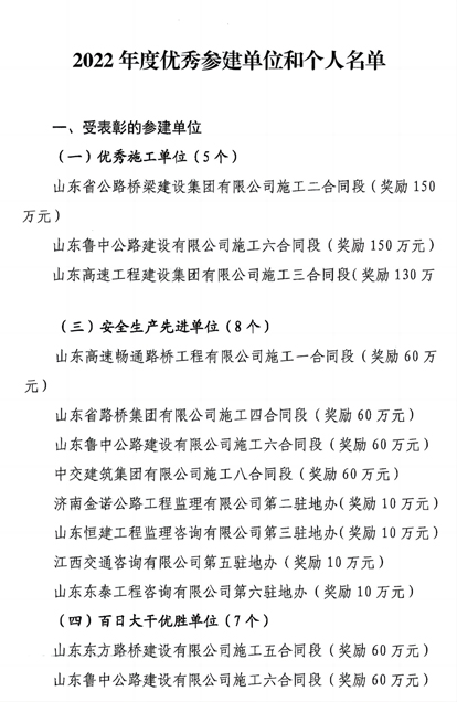 近日,山東高速淄臨高速公路有限公司發(fā)布魯高速淄臨綜【2023】1號(hào)——《關(guān)于表彰2022年度工程建設(shè)優(yōu)秀單位、個(gè)人的通報(bào)》,魯中公路臨臨項(xiàng)目六合同獲評(píng)“優(yōu)秀施工單位”等多項(xiàng)表彰。