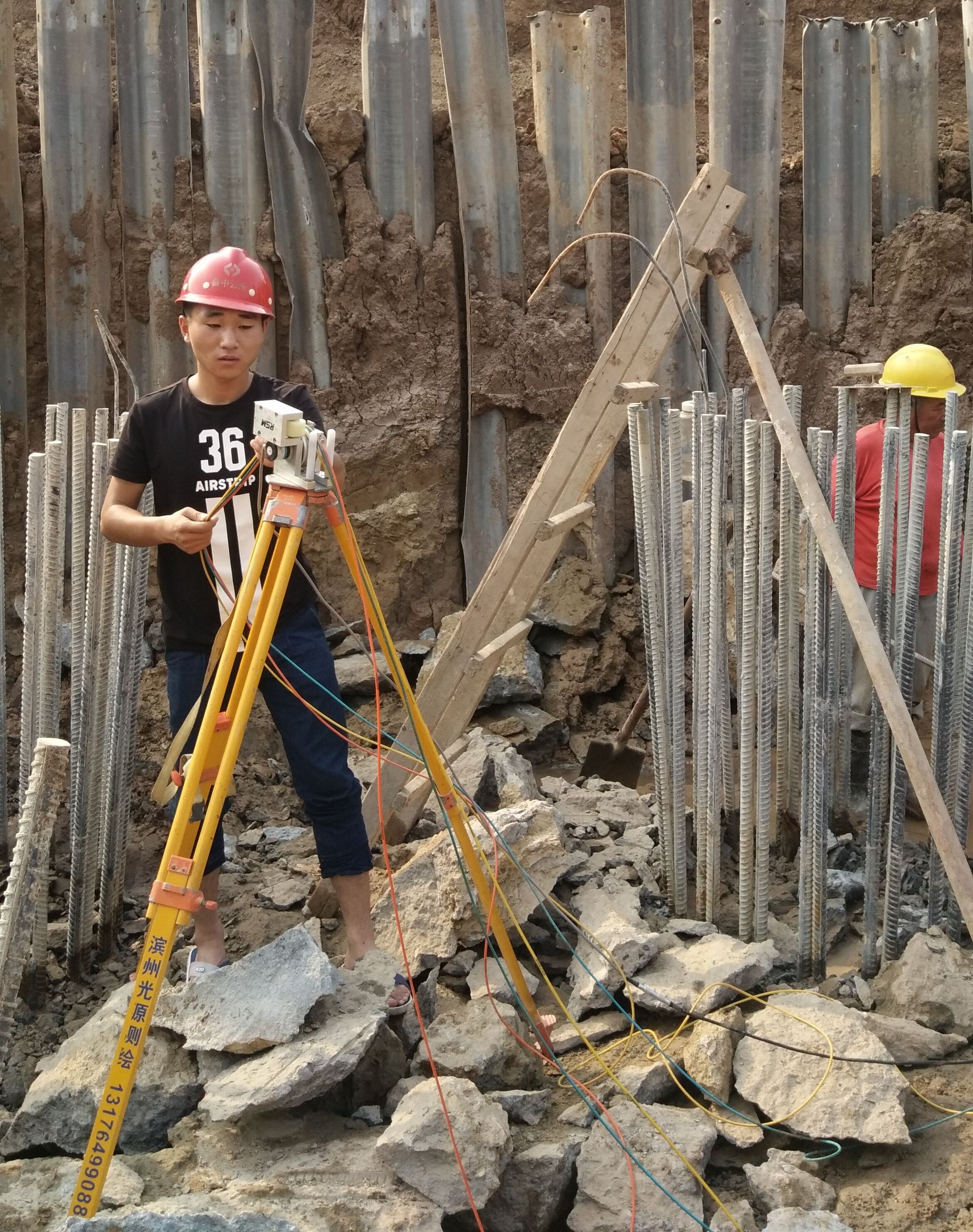 10月1日上午11:00,基礎(chǔ)分公司S102項(xiàng)目測(cè)量員沈夢(mèng)麟進(jìn)行測(cè)量工作。
