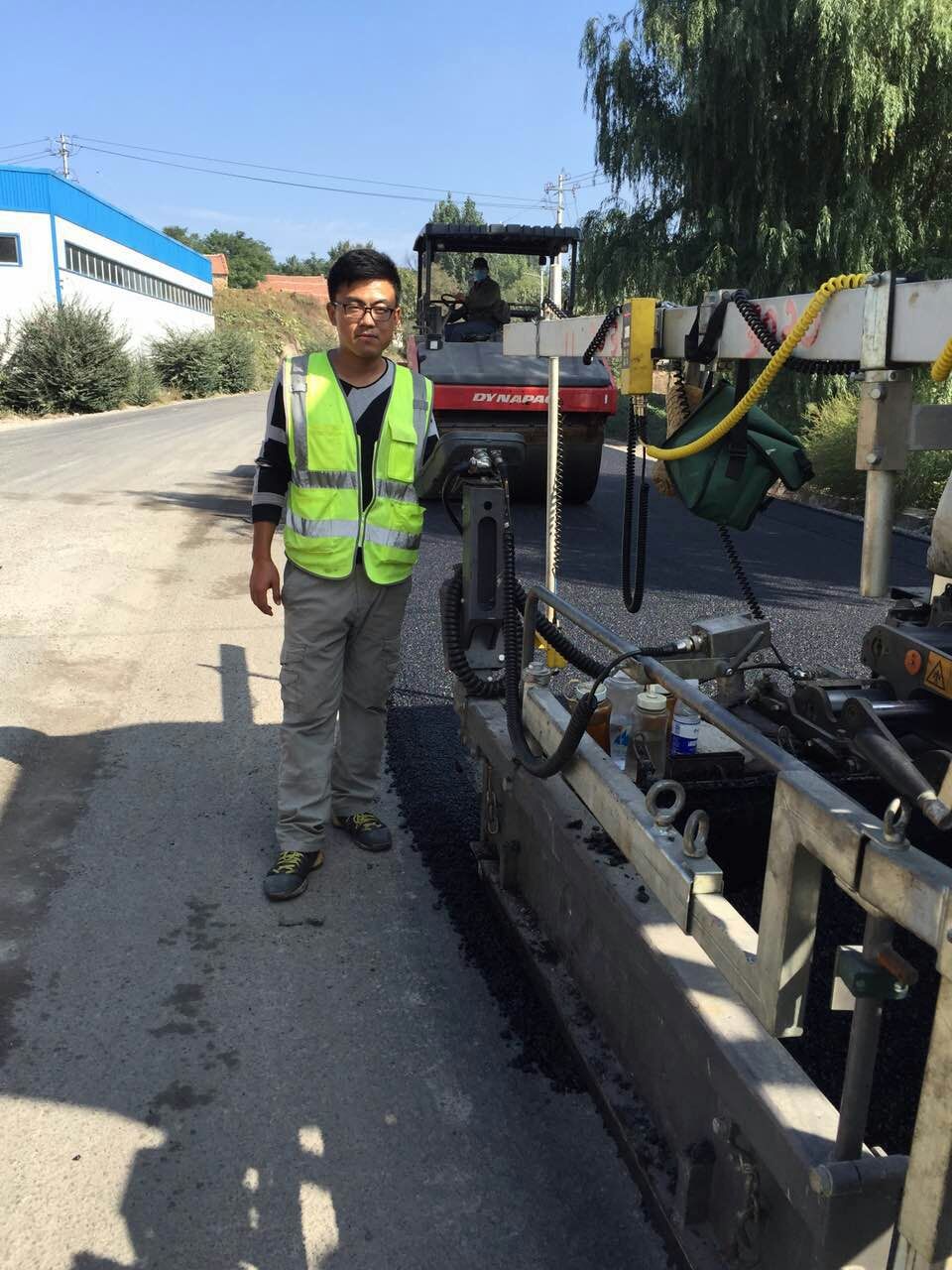 10月1日上午10:00,路面分公司施工隊(duì)長(zhǎng)張棟皓在檢驗(yàn)攤鋪機(jī)運(yùn)轉(zhuǎn)。