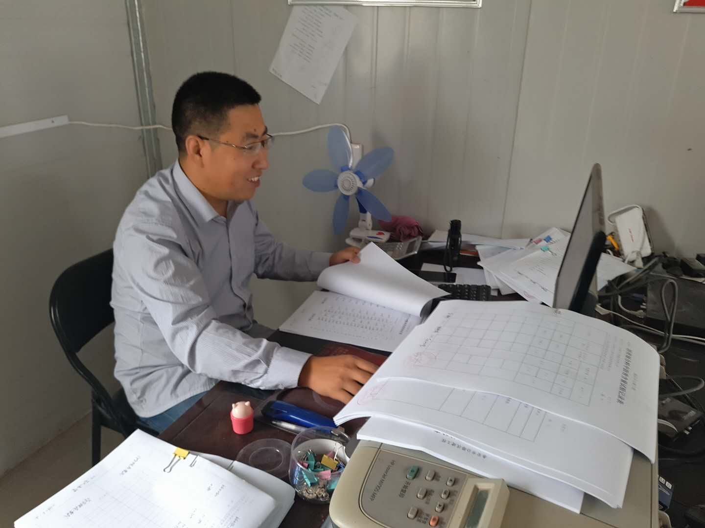 10月1日上午9:00,路面分公司技術(shù)員呂遵祥正在整理博草線最后一期計(jì)量。