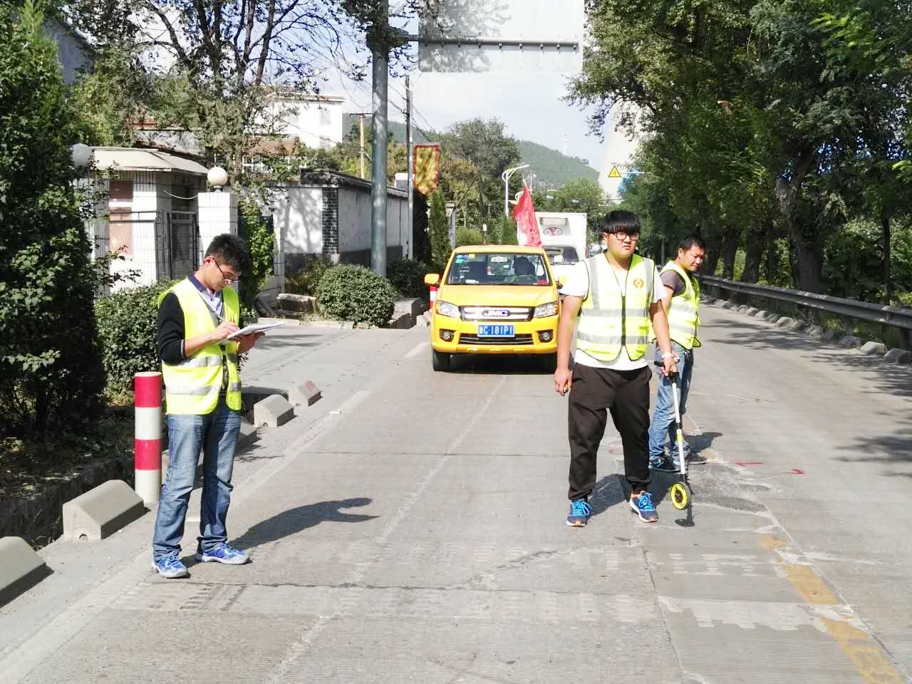 10月1日下午1:50,養(yǎng)護(hù)分公司博山205項(xiàng)目部技術(shù)員顏秉鉛在進(jìn)行路況調(diào)查。