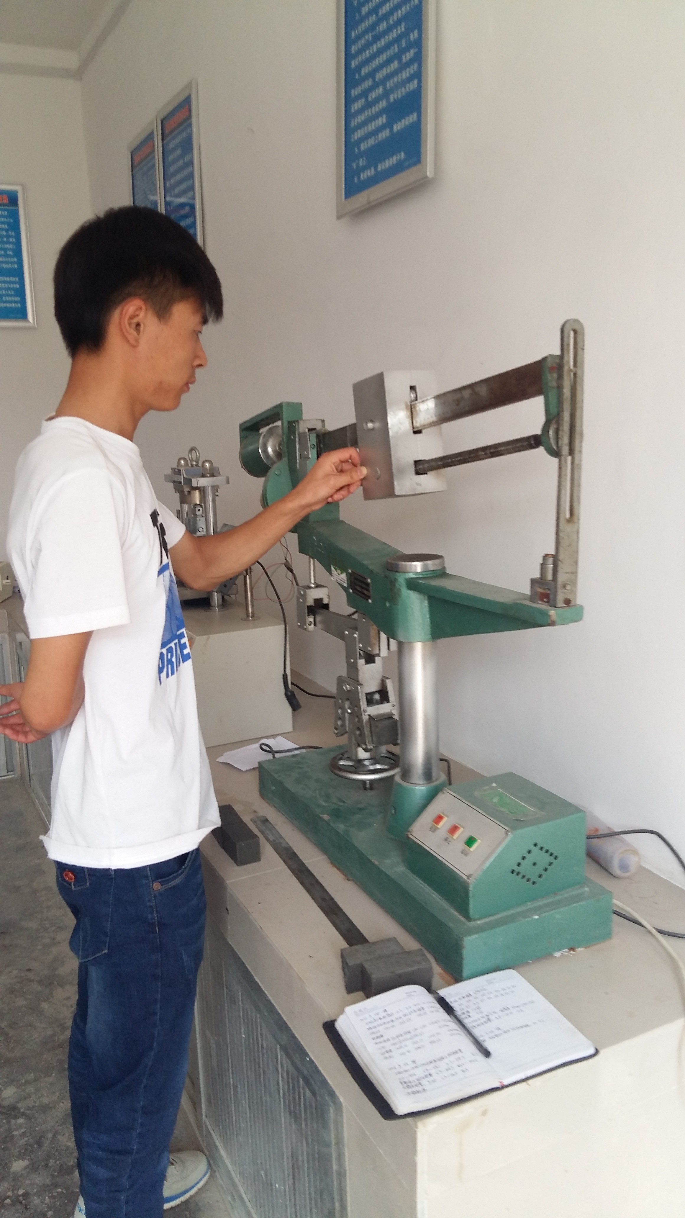 10月1日上午10:20,市政分公司試驗(yàn)員武向東在進(jìn)行水泥沙漿抗折試驗(yàn)。