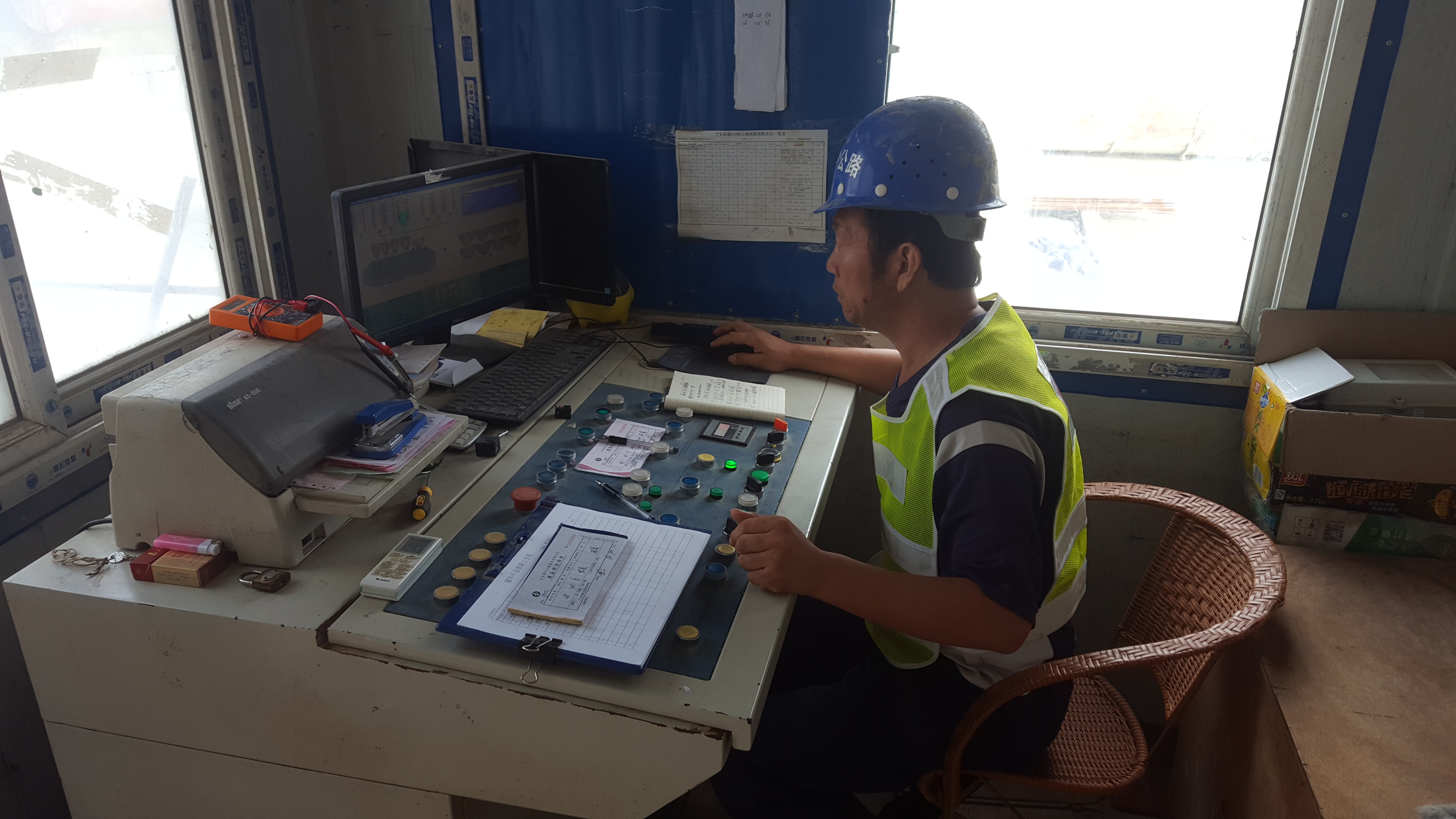 10月1日上午11:00,基礎(chǔ)分公司江西寧安項(xiàng)目部拌合站操作員景吉強(qiáng)堅(jiān)守崗位。