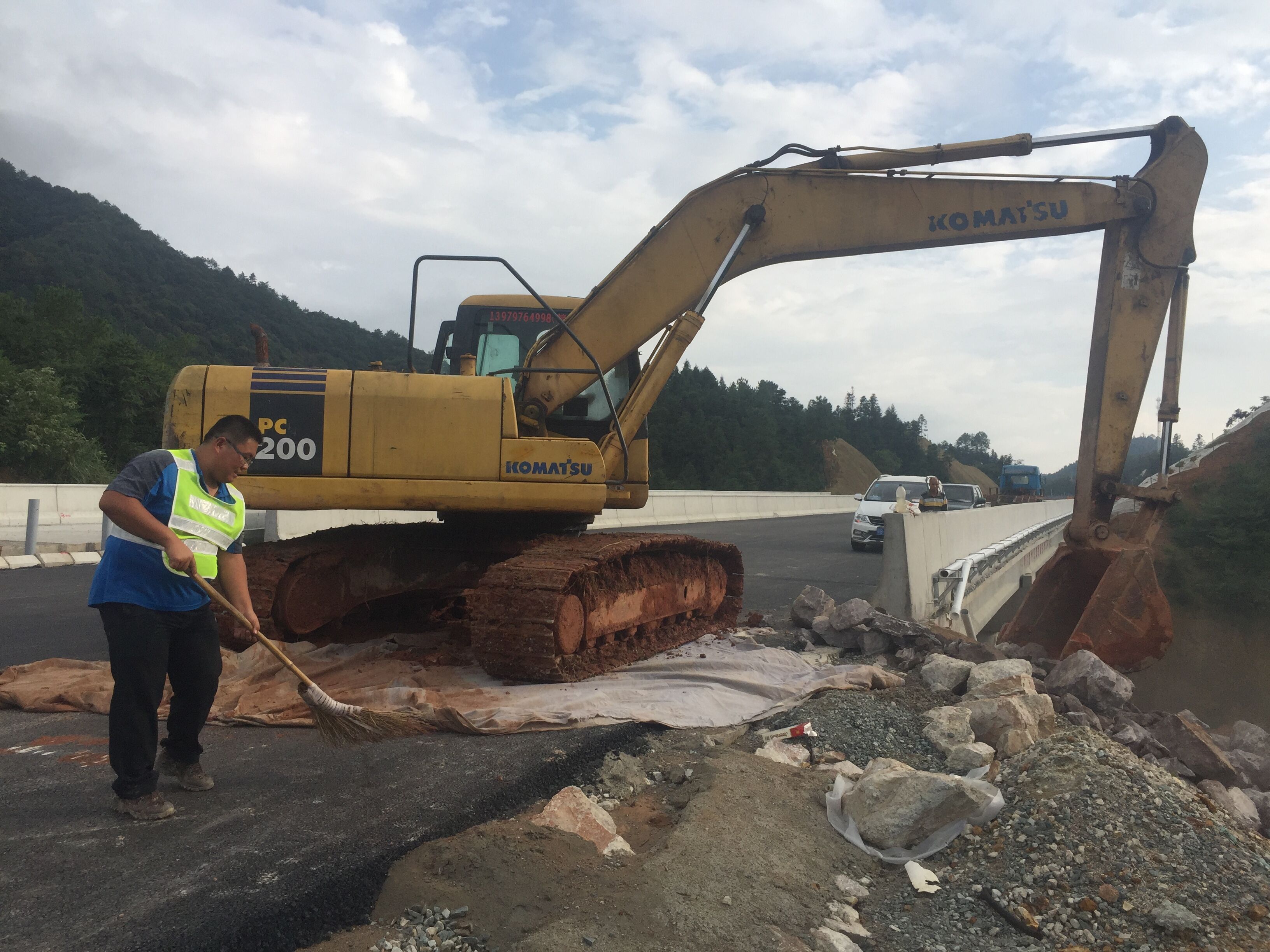10月1日下午15:30,養(yǎng)護(hù)分公司九東項(xiàng)目部排水溝挖掘施工現(xiàn)場(chǎng)。