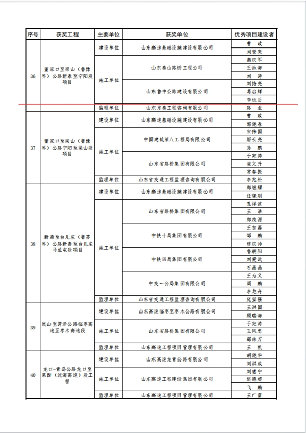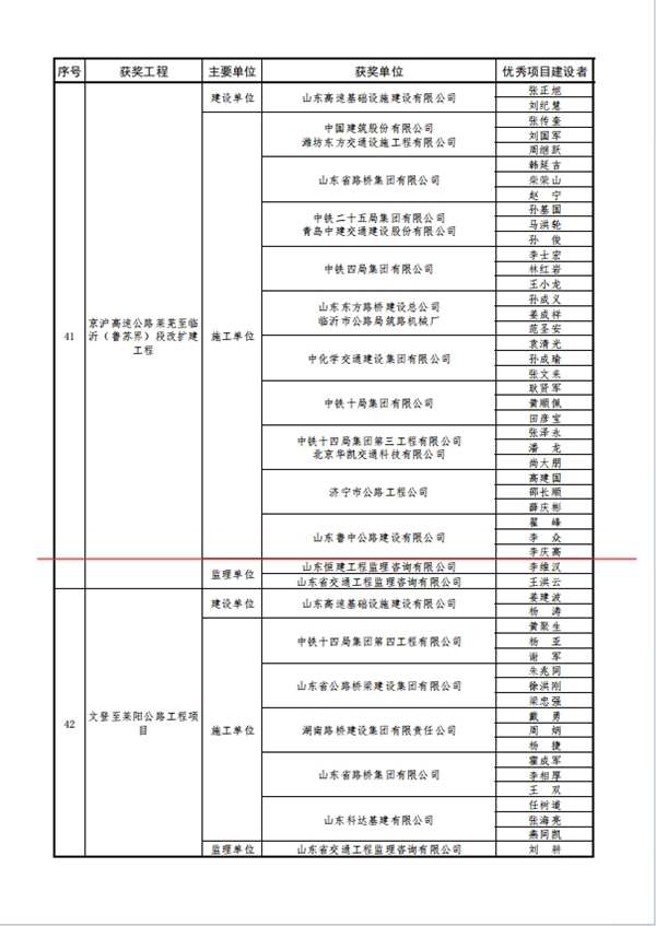 近日,中國(guó)公路建設(shè)行業(yè)協(xié)會(huì)發(fā)布2022-2023年度公路交通優(yōu)質(zhì)工程獎(jiǎng)獲獎(jiǎng)名單,公司承建的京滬高速公路萊蕪至臨沂(魯蘇界)段改擴(kuò)建工程十標(biāo)段、董家口至梁山(魯豫界)公路新泰至寧陽(yáng)段項(xiàng)目二標(biāo)段喜獲此項(xiàng)殊榮。