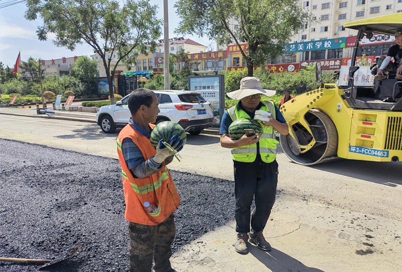 為一線施工人員和機械操作人員送去西瓜、藿香正氣水等防暑物資