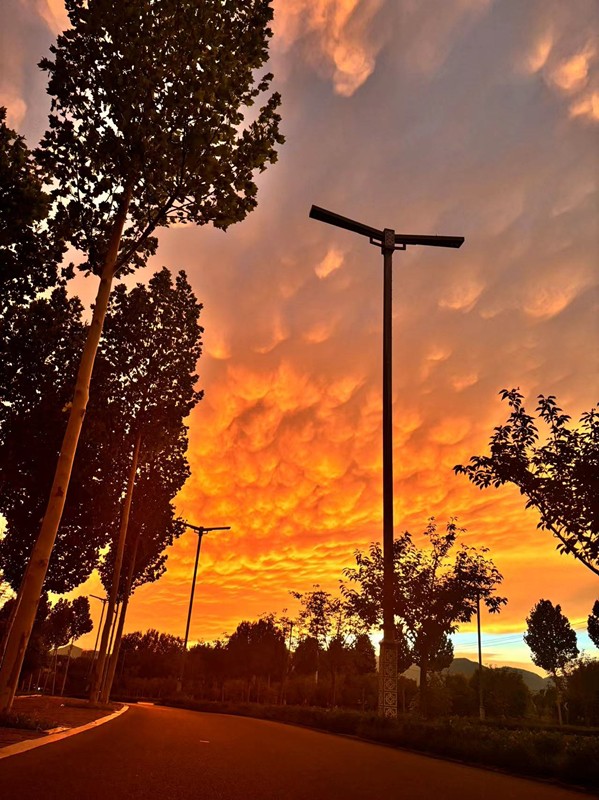 云的變幻不僅是大自然的神奇之處,更是人們心靈的寄托。在忙碌的生活中,人們常常抬頭仰望天空中的云朵,從中尋找片刻的寧?kù)o與慰藉。云朵的千變?nèi)f化如同生活的多姿多彩,給予人們無(wú)盡的想象空間。傍晚吃完晚飯看著外面灰蒙蒙的天以為要下雨,打算出去散散步快去快回,剛走不久頭頂?shù)脑谱兊迷絹?lái)越美,越來(lái)越絢爛多彩,我感覺(jué)單單一張照片顯示不出當(dāng)時(shí)的精彩絕倫,。每一分每一秒的云都不同,每個(gè)角度有每個(gè)角度的美。