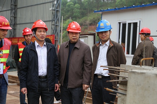 集團公司董事長、黨委書記朱堅和(右三),廣西北部灣投資集團有限公司副總經理周華文(右一)在現(xiàn)場交流