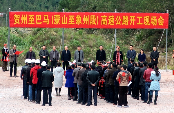 12月22日,集團(tuán)公司賀州至巴馬高速公路(蒙山至象州段)(簡(jiǎn)稱“蒙象高速”)在金秀縣召開(kāi)開(kāi)工現(xiàn)場(chǎng)會(huì),標(biāo)志著該項(xiàng)目正式開(kāi)工建設(shè)。來(lái)賓市人民政府副市長(zhǎng)韋平主持會(huì)議。