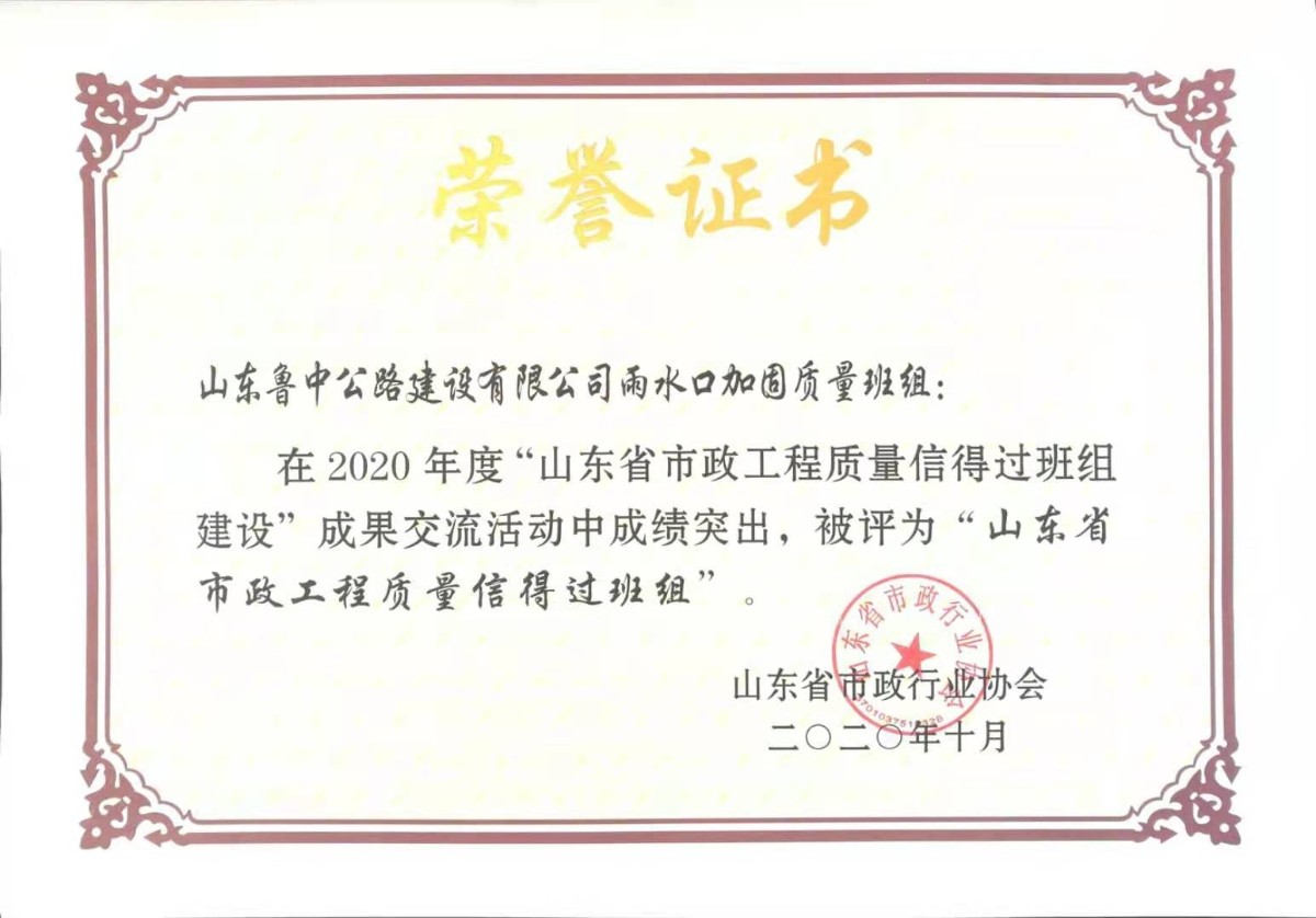 - 2020年度山東省市政工程質(zhì)量信得過(guò)班組