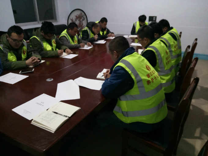 會議首先由項目經理于道江對今年的工程安全形勢做出了總體介紹,對各科室、各部門安全工作任務進行了詳細安排,與項目部各部門、科室之間分別簽訂了安全生產責任書,保障九東路安全生產零事故發(fā)生。九東路項目即將開工,對開工前的各項安全準備工作及安全實施工作進行了系統(tǒng)詳細的安排,做好安全及環(huán)保工作是保障生產的前提。要求制定完善安全監(jiān)督檢查制度;安全例會制度,通報近期安全工作情況;安全巡檢制度,不定期進行安全巡視;加強機械安全管理,各類施工機械及自有車輛的安全保障;特種崗位崗前培訓,不定期進行安全規(guī)程培訓學習;班前安全宣講制度,每道工序開展前進行安全宣講。各部門、各科室也對今年的安全工作范圍做出了具體的匯報及安排。