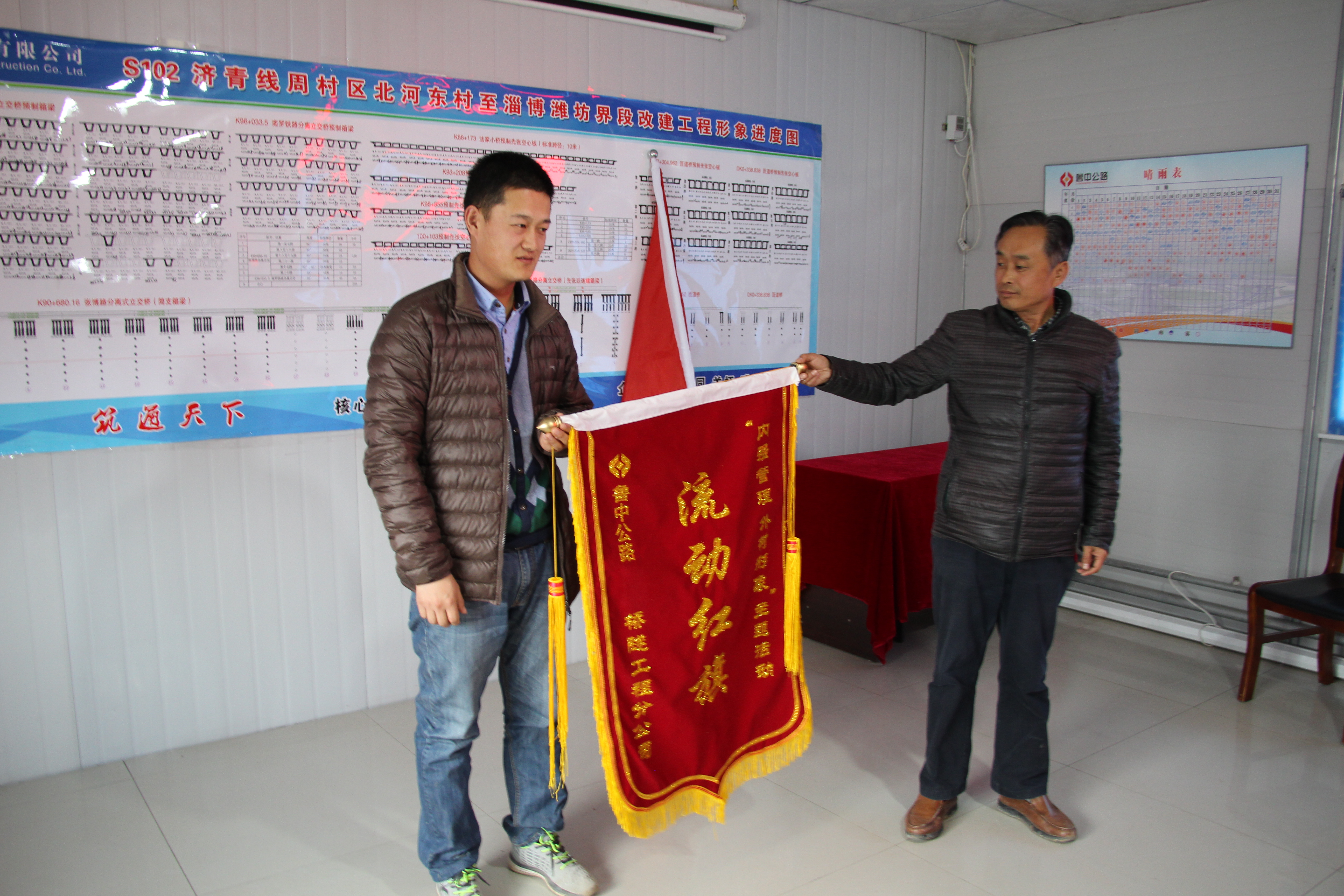 動(dòng)員會(huì)最后,由橋隧分公司技術(shù)總工宋勇將主題活動(dòng)的流動(dòng)紅旗授予了在去年獲得“省級(jí)安全文明工地”榮譽(yù)稱號(hào)的馬南路孝婦河橋梁工程項(xiàng)目部。