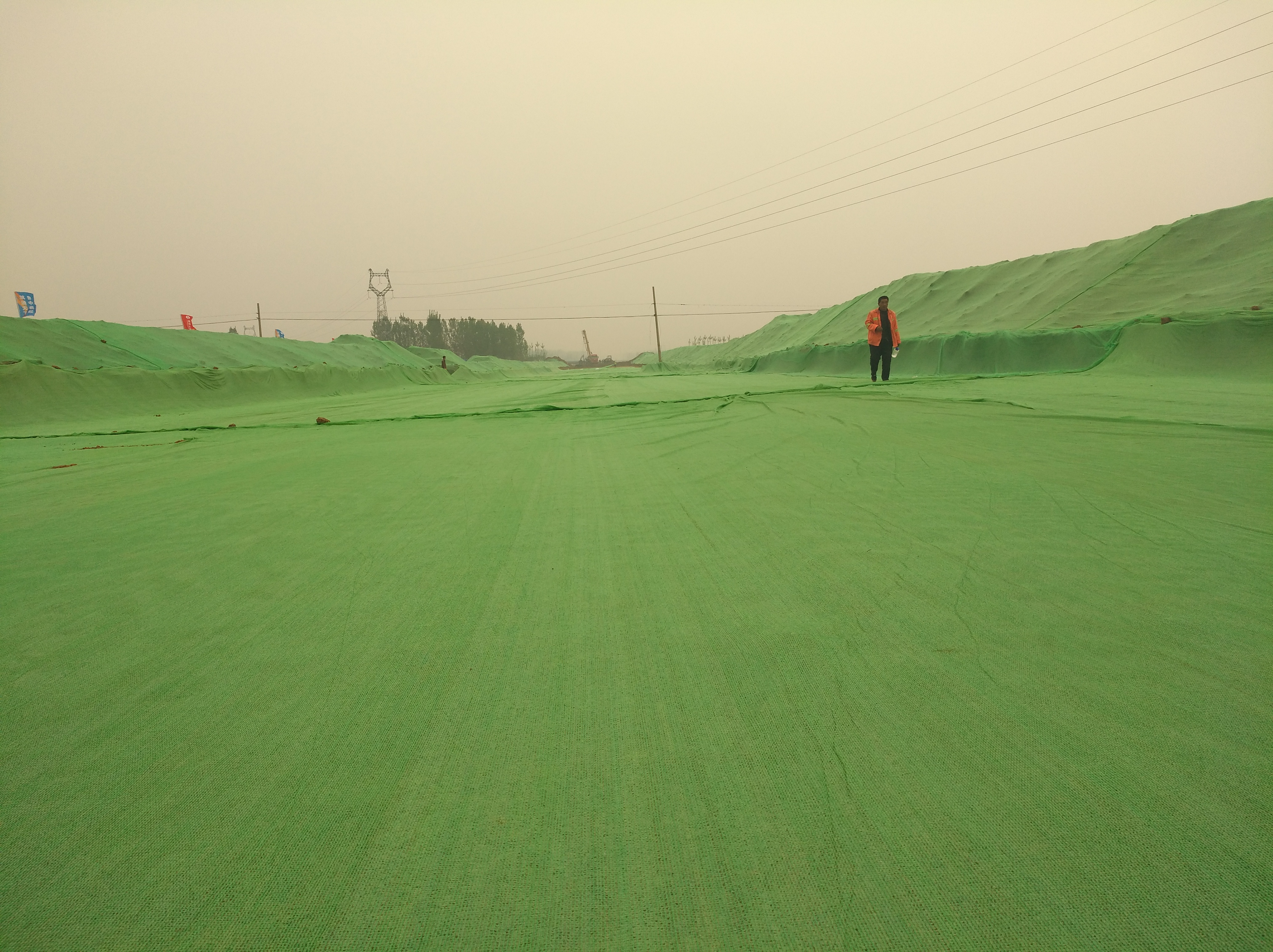 目前,準(zhǔn)備工作基本完成,施工作業(yè)有序展開(kāi)。施工現(xiàn)場(chǎng)完成彩鋼板圍擋,障礙物基本處理完畢,全線便道修筑完成,防塵網(wǎng)做到百分之百覆蓋,8%石灰土路基試驗(yàn)段完成。