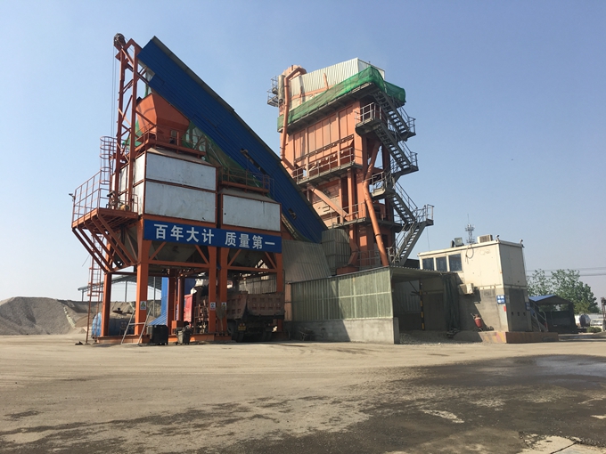 五一期間,悅莊拌合站掠影,為了防治揚塵,路面采取灑水處理。